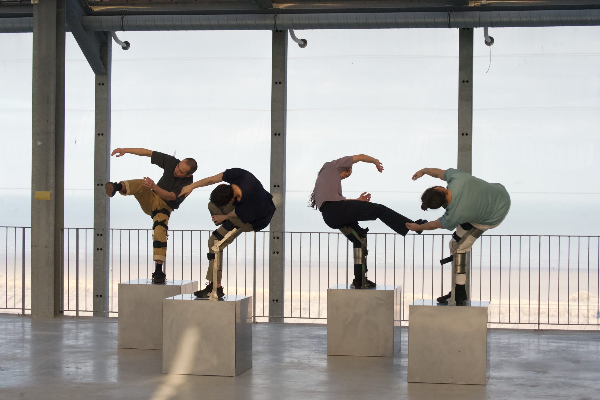 La lumière s’allume peu à peu sur ce qui semble être une réserve de musée. Quatre corps immobiles, statues de chair, s’animent doucement. Un paysage d’acier et de structures improbables les entoure. Une humanité fragile finit par émerger, à la recherche d’un équilibre, d’une manière d’habiter le monde. Dans cet espace suspendu dans le temps, tout devient instable : les repères, les corps, la gravité. Ensemble, ils jouent, cherchent, tombent et recommencent. Ensemble, ils dansent.